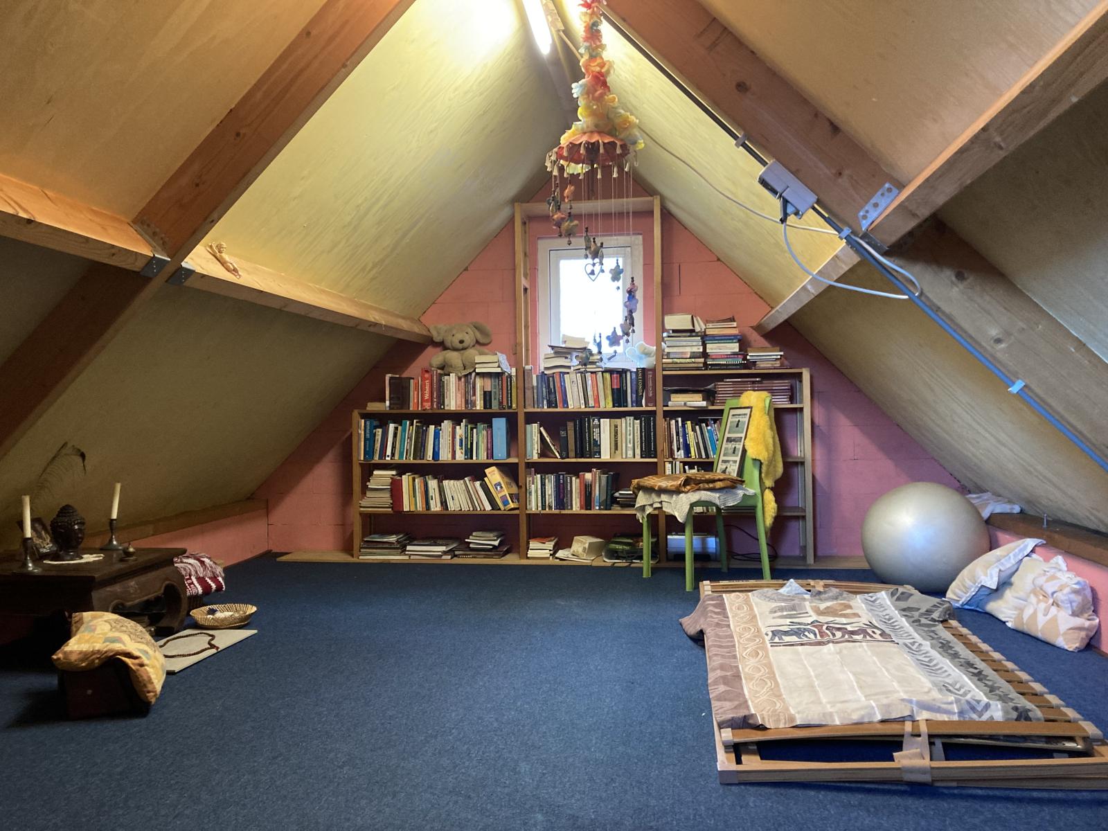 Op de vliering is ook nog opbergruimte.