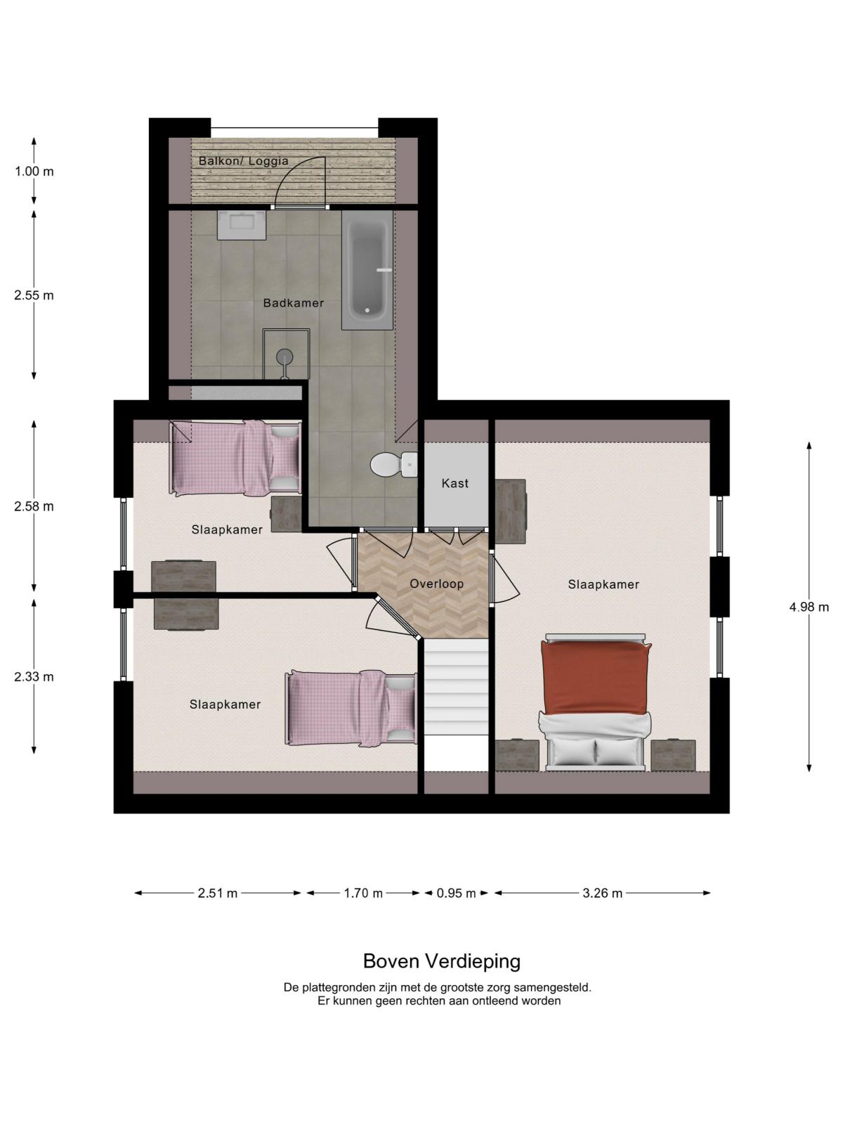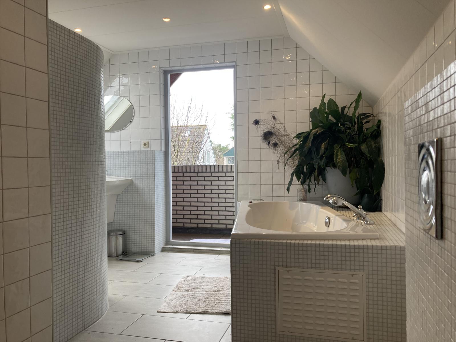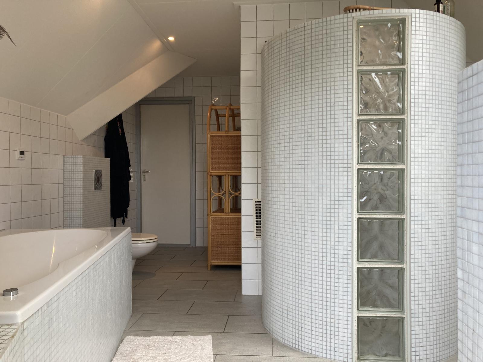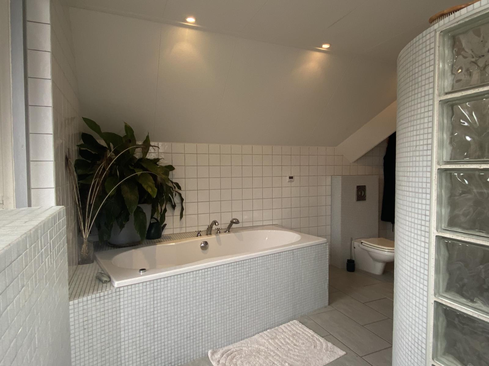 Op de bovenverdieping bevinden zich drie slaapkamers met diverse afmetingen en een royale badkamer. De badkamer is voorzien van een whirlpool ligbad, toilet, inloopdouche, wastafel en meubel. Vanuit de badkamer is de loggia bereikbaar. Vanaf hier is er een fraai uitzicht over de achtertuin.