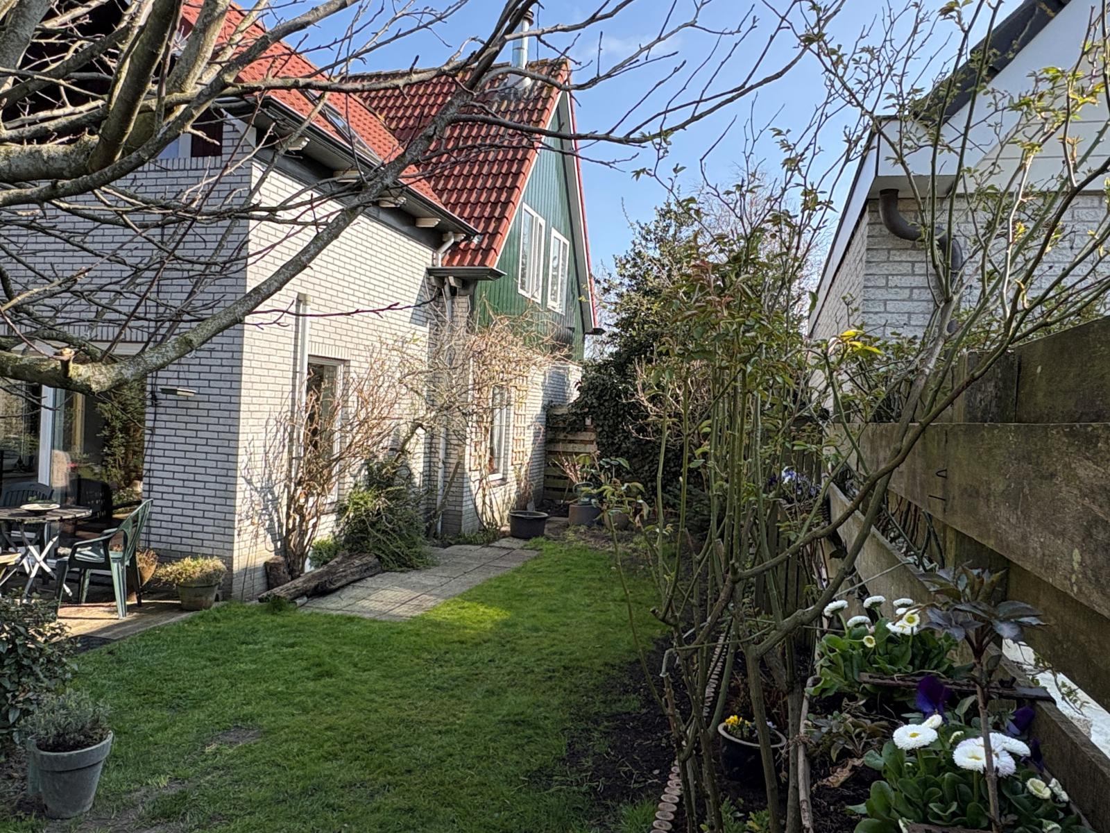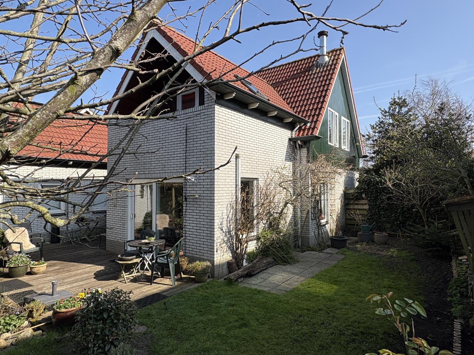 Op de houtenvlonder voor de woning is het met mooi weer heerlijk vertoeven in het zonnetje en kan je sowieso genieten van de heerlijke beschutte tuin.