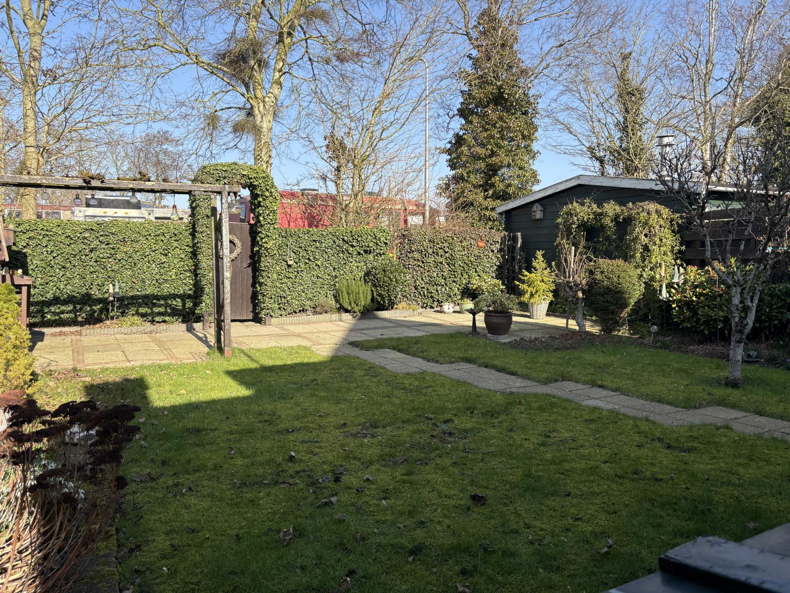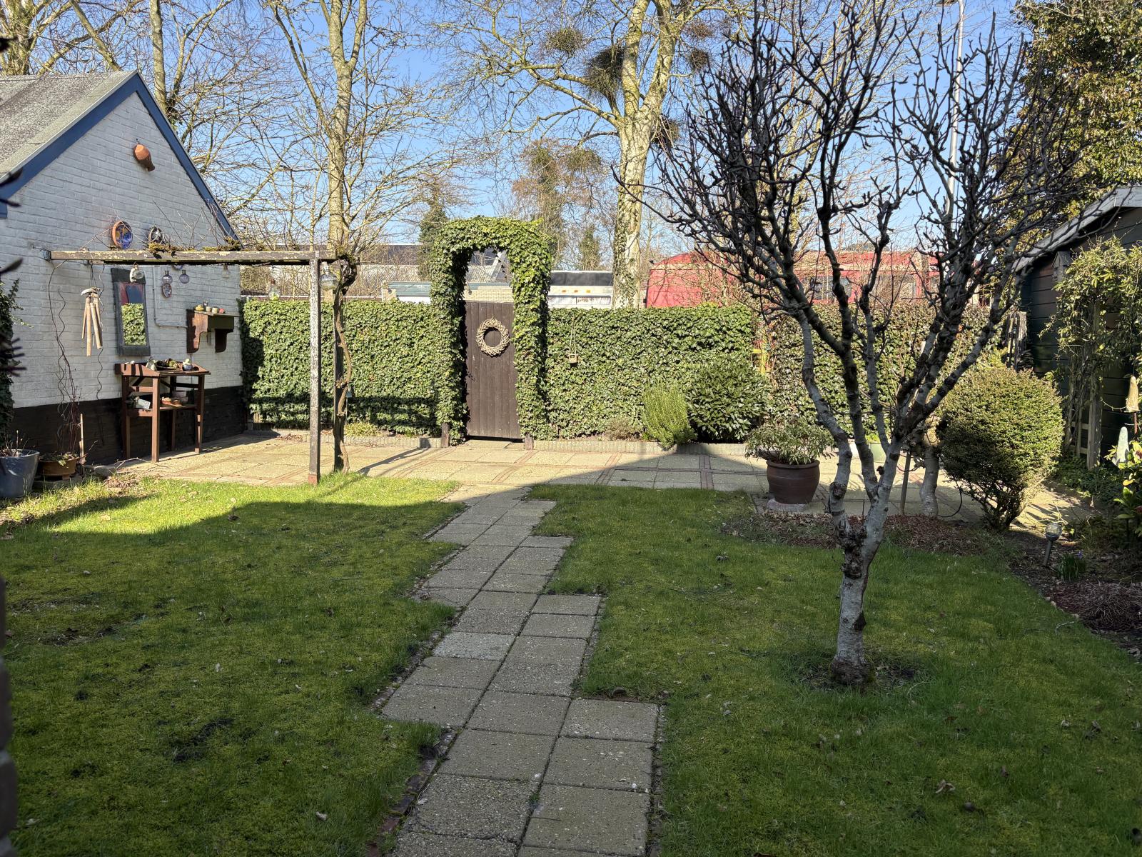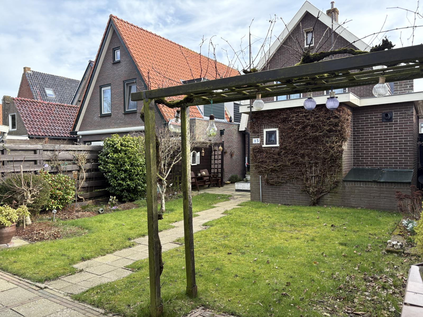 De heerlijke achtertuin is ook bereikbaar via de bijkeuken. Deze heeft veel privacy en is fraai ingericht. Degene met groene vingers kunnen hier heerlijk hun gang gaan.