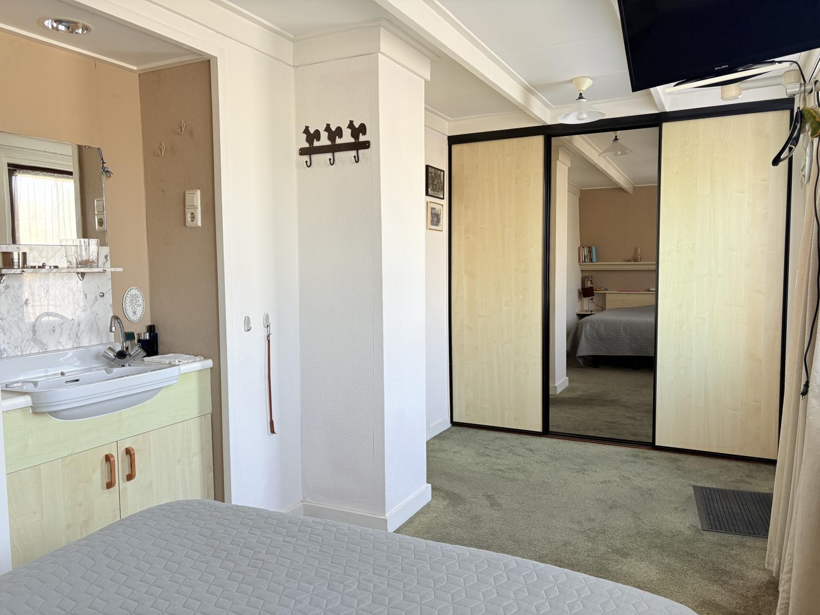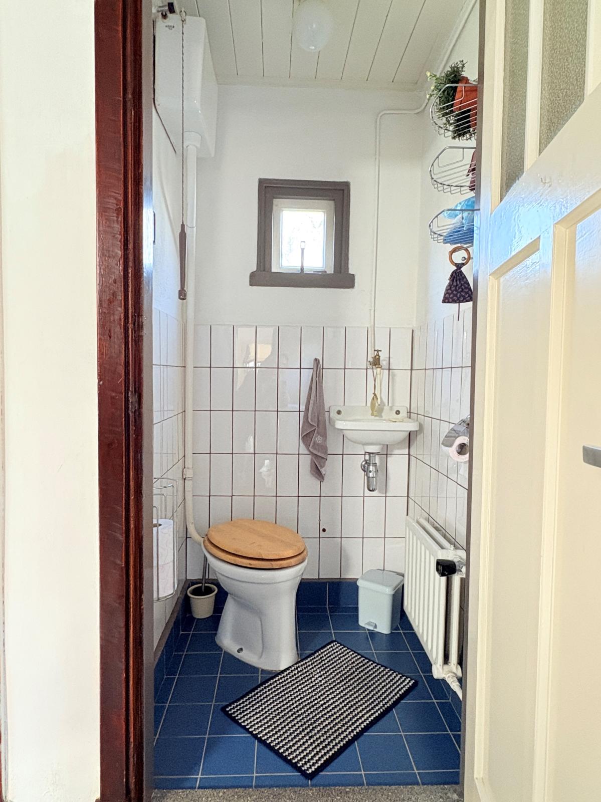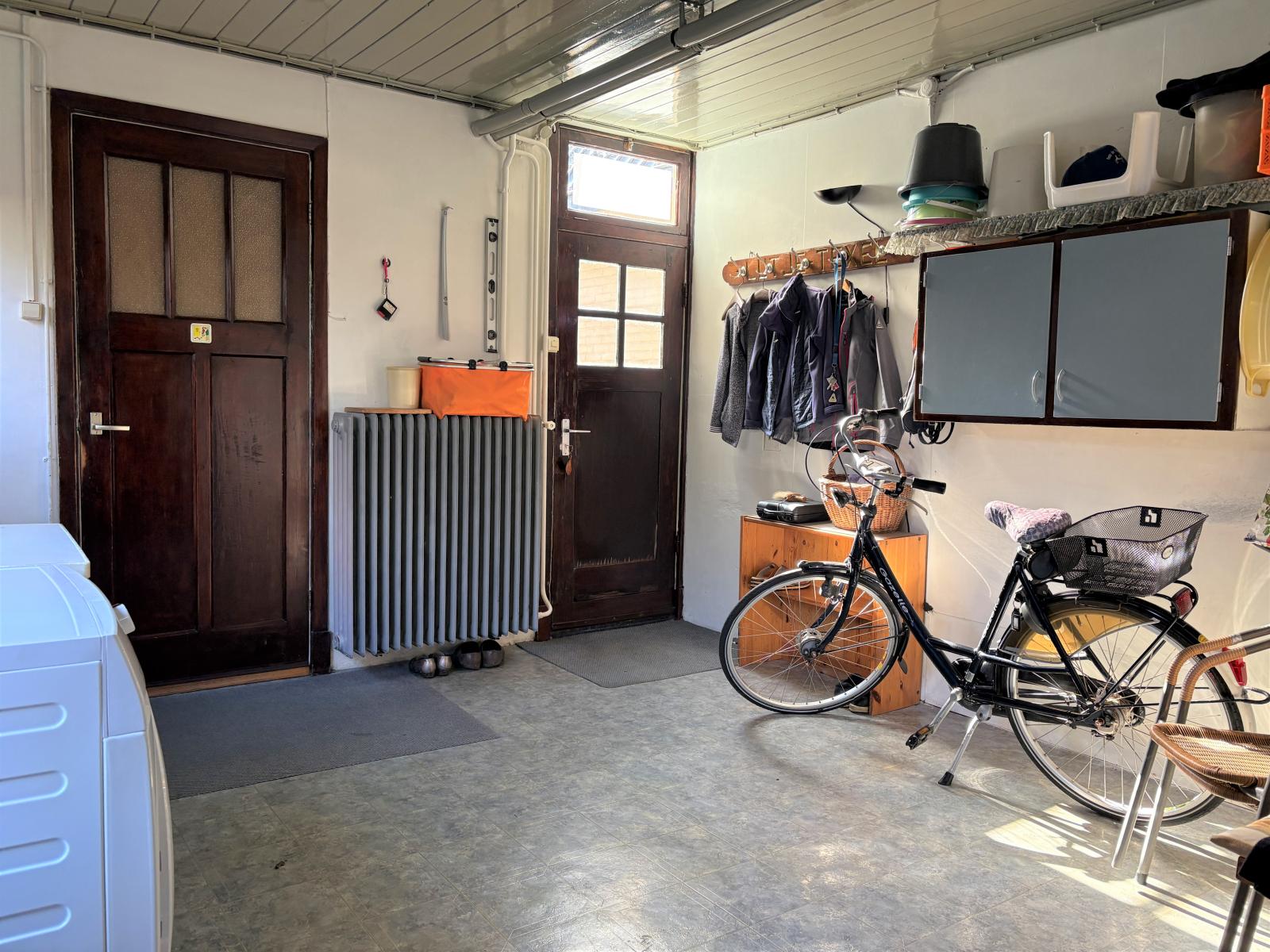 Aangrenzend vind je de praktische ruime bijkeuken met het toilet, vaste kast, c.v.-ketel en opstelruimte voor wasmachine en droger.