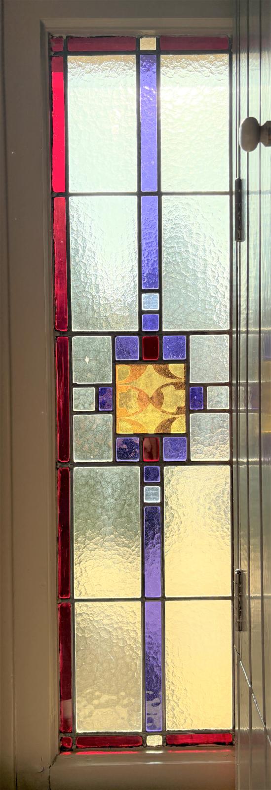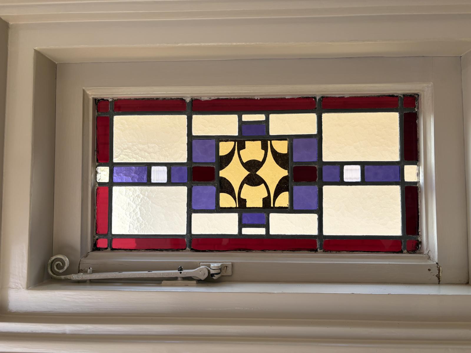 De klassieke elementen zoals glas-in-lood ramen en hoge plafonds geven de woning veel charme en karakter, die perfect passen bij een moderne touch.